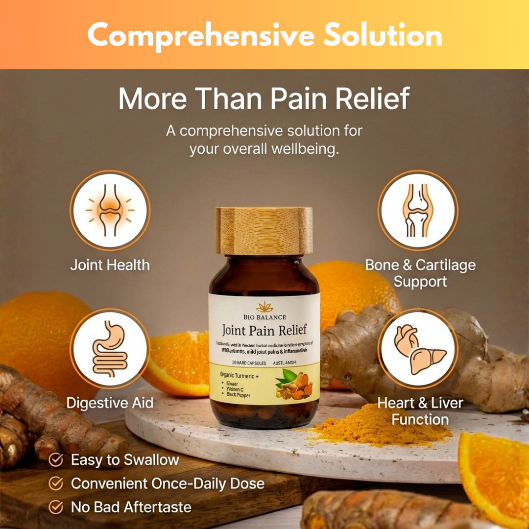 Bio Balance combines organic turmeric (95%+ curcuminoids) with piperine, ginger & vitamin C. It reduces the Cytokines that caues inflammation, helping ease joint pain and support easier movement, naturally & safely.